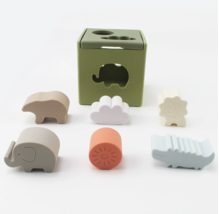 The set includes a sturdy silicone box and six colorful shapes to sort, helping children build shape awareness and logical thinking as they match each piece to its spot. Lightweight and durable, it’s ideal for playtime at home or on the go.